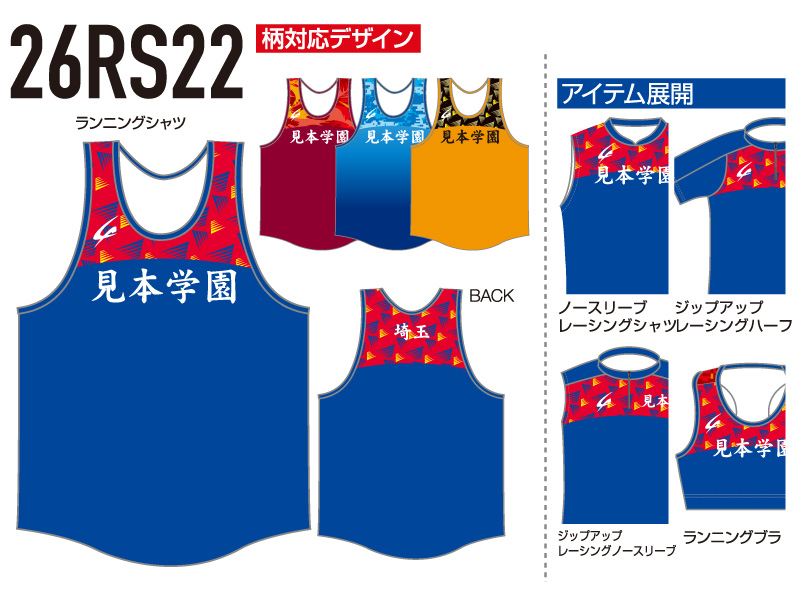 陸上競技ユニフォーム男性用・女性用・男女兼用の定番デザイン一覧です。
